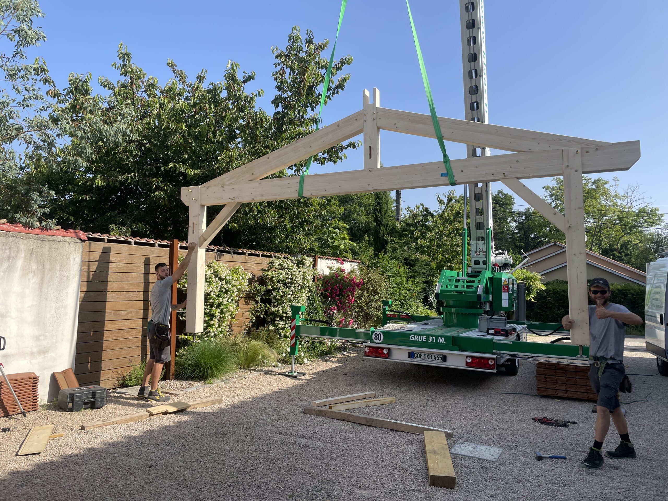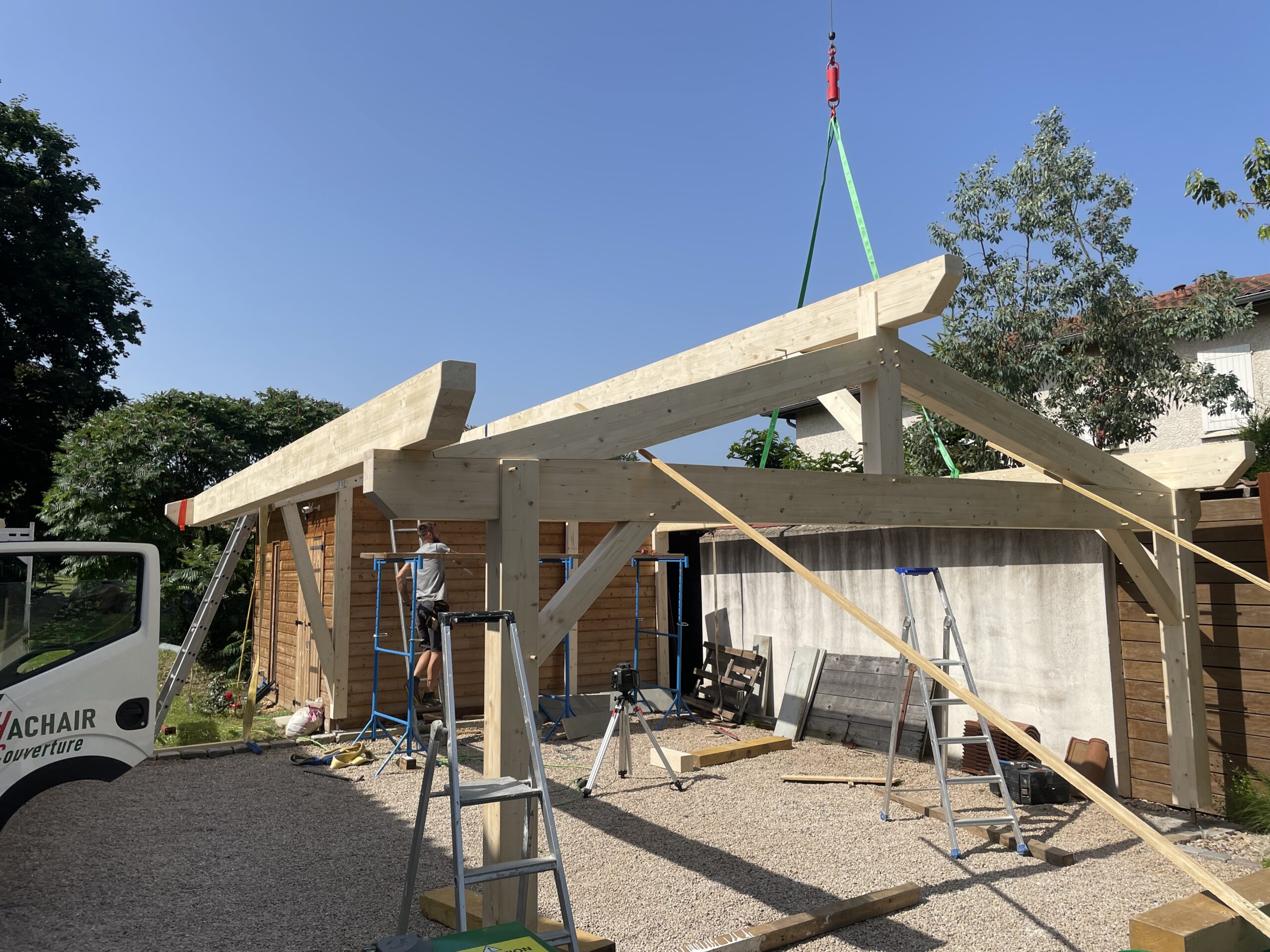 Atelier de charpente, couverture et zinguerie comprenant tout le matériel et les engins nécessaires :